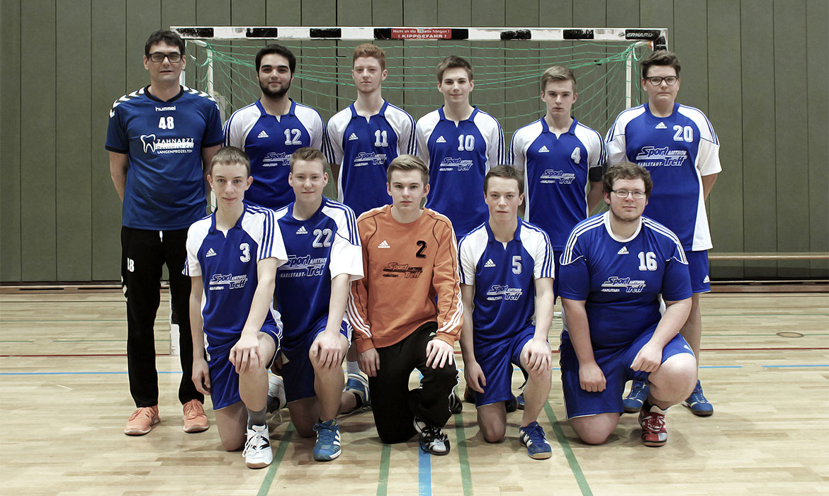 Hintere Reihe (v.l.): Horst Jöst (Trainer), Gurur Saglam, Hannes Blaumeiser, Yannik Kohlmann, Adrian Schwab, Henrik Jöst. Vordere Reihe: Carsten Gatermann, Alexander Keßler, Michael Schwab, Sam Amthor, Luca Sattler.