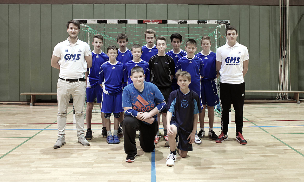 Hintere Reihe (v.l.): Andreas Obert (Betreuer), Moritz-Ludwig Müller, Moritz Obert, Jonas de Haan, Viktor Obert, Max Schmitt, Max Blaumeiser (Trainer). Mittlere Reihe: Tilmann Schmid, Thorben Ringo Joswiakowski, Johannes Michler, Leon Georg. Vordere Reihe: Benjamin Stieber, Moritz de Haan.